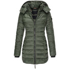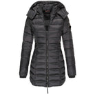 Elise—our long down jacket for fall and winter with a hood and zipper—is the ideal companion for the colder seasons. Made from high-quality polyester, the jacket offers style and functionality to keep you warm and fashionable.